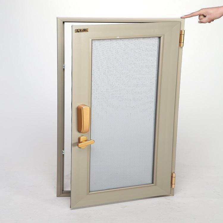 6. 五金件:配備專用的金色合頁、口袋鎖五金配件,保證門窗與金剛紗窗同時開啟關(guān)閉。