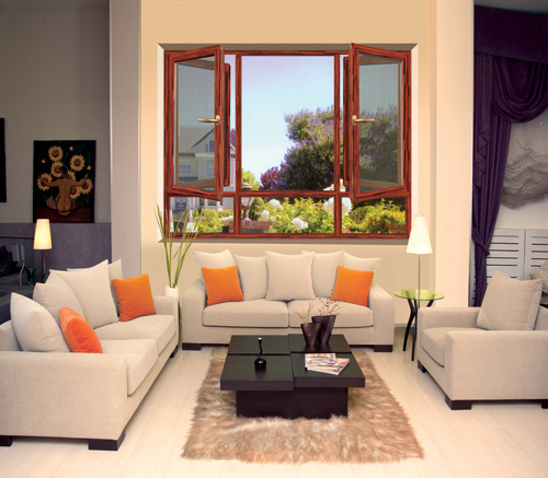 福斯盾木紋轉(zhuǎn)印斷橋鋁門窗
